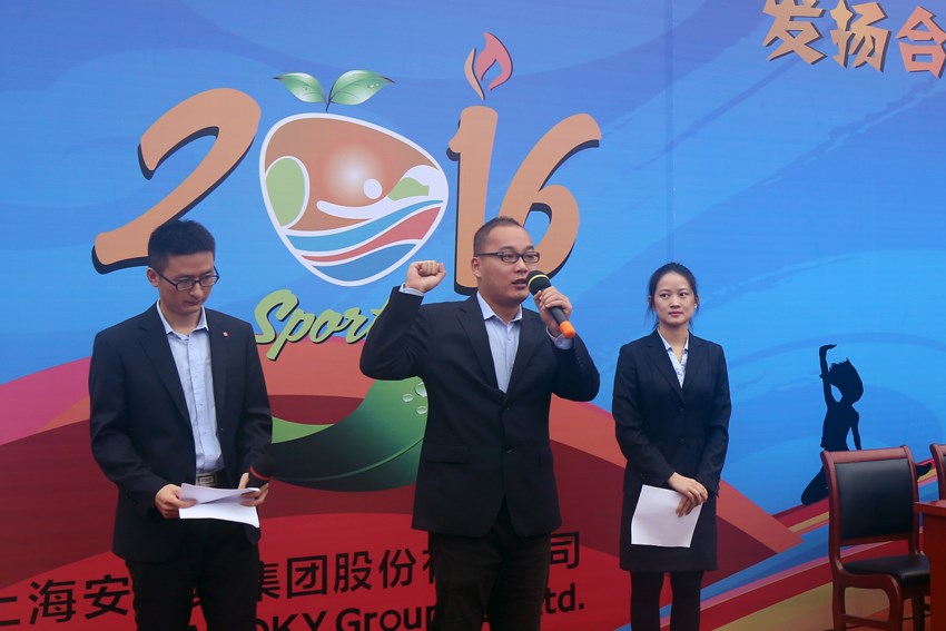 集團董事長兼總裁紀立軍宣布運動會正式開幕。